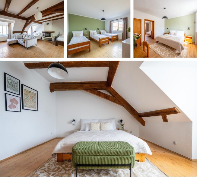 Pokoje a apartmány penzionu jsou citlivě opravené s co největším ohledem na původní stavbu. Nábytek je vyroben ze dřeva a ošetřen přírodními materiály. K dispozici je úschovna na kola a uzavřené parkoviště.