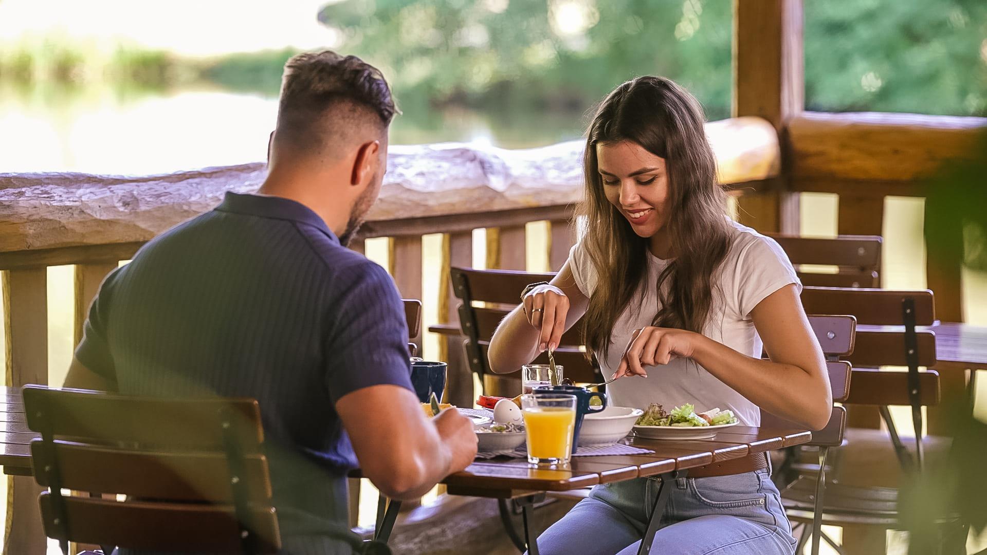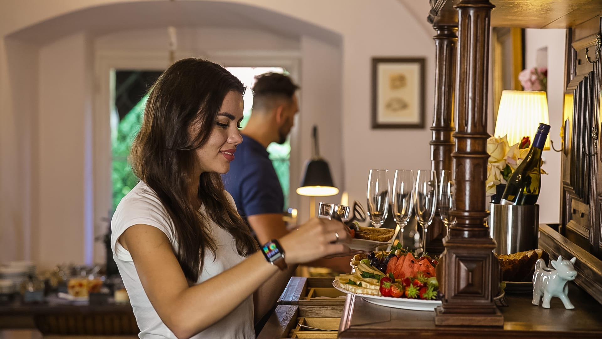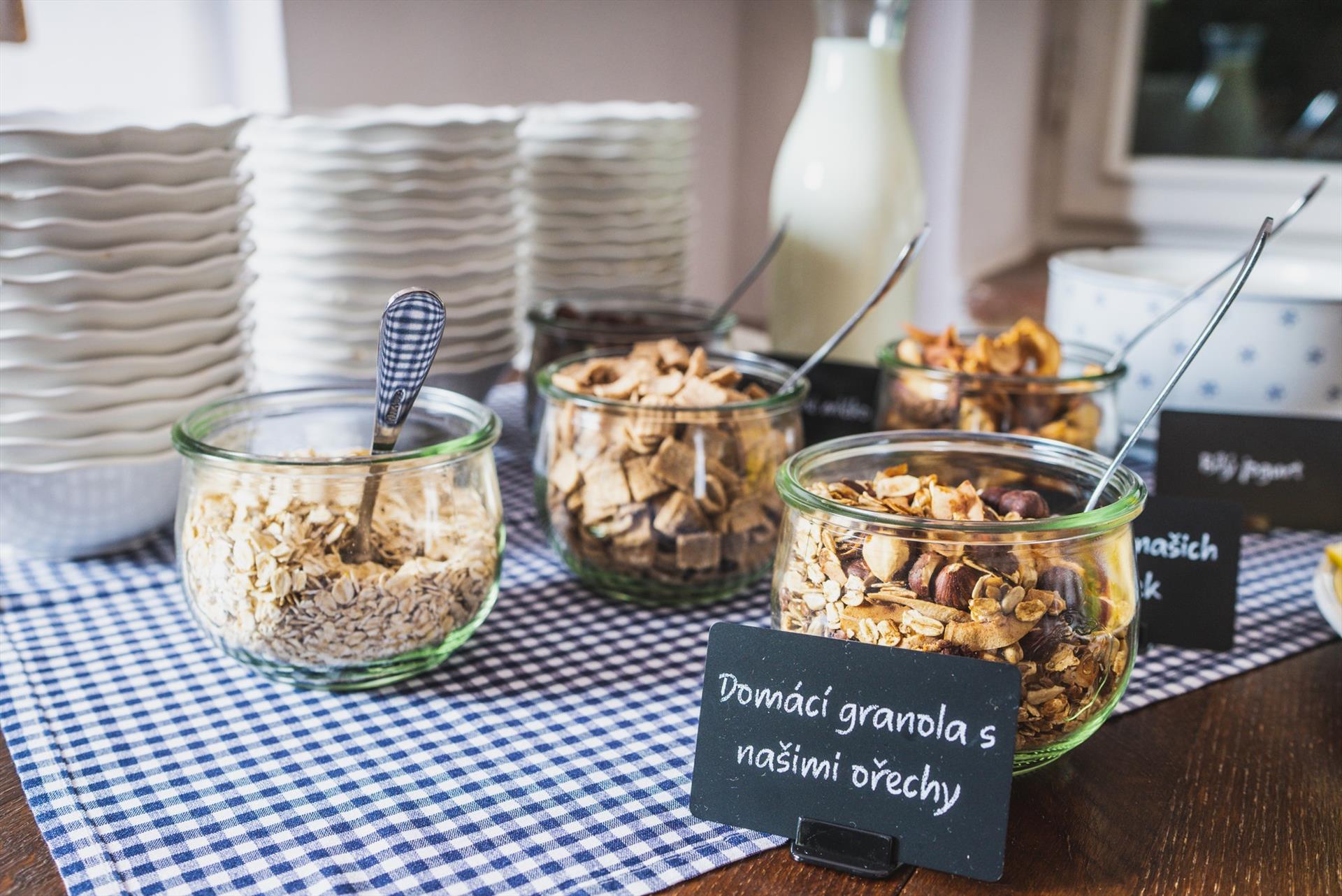 Večeře pro hotelové hosty a hosty podáváme formou rautu, který je každý den jiný. Naše rauty hosté jednoduše milují. Na výběr máme vždy 2 polévky, 5 předkrmů, 4 hlavní jídla a 3 dezerty. Všechna jídla jsou z čerstvých surovin a velká část pochází z naší farmy - vývary a husté krémy, čerstvé saláty, tatarák z našeho bio hovězího, marinované řepy a karotky ze zahrady a rybí salát. Domácí jsou také dále burgery, hovězí v mrkvi, řízečky, boloňské těstoviny, bramboráčky a špízy. Dětská bříška jsme si získali borůvkovými knedlíky, čokoládovou fontánou, spoustou ovoce nebo buchtičkami s vanilkovým krémem.